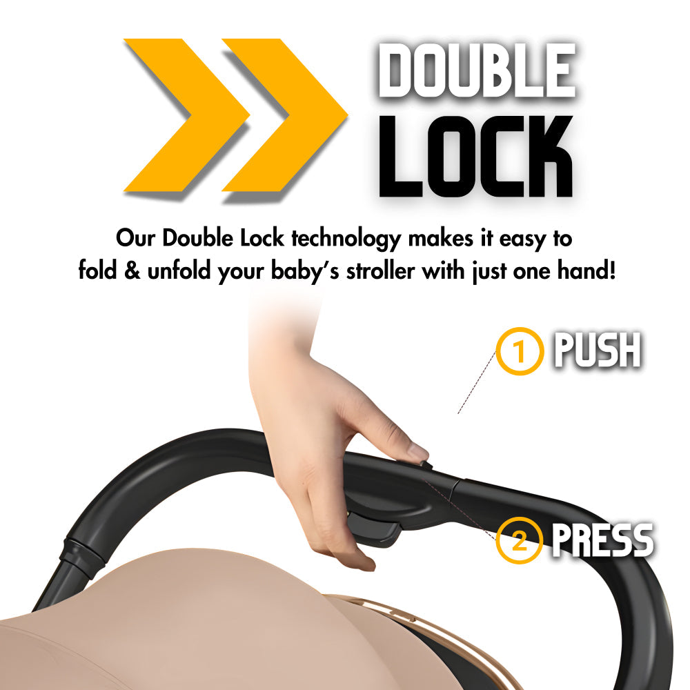 Indulge in unparalleled elegance and functionality with our Deluxe 3-in-1 Baby Stroller. Your little one will relax in both comfort and style as you glide through life, thanks to its premium lightweight alloy frame. Enhanced by the high-quality X-Frame Shock-Absorber design, it ensures not only a touch of refinement but also a smooth, cushioned ride for your precious bundle.