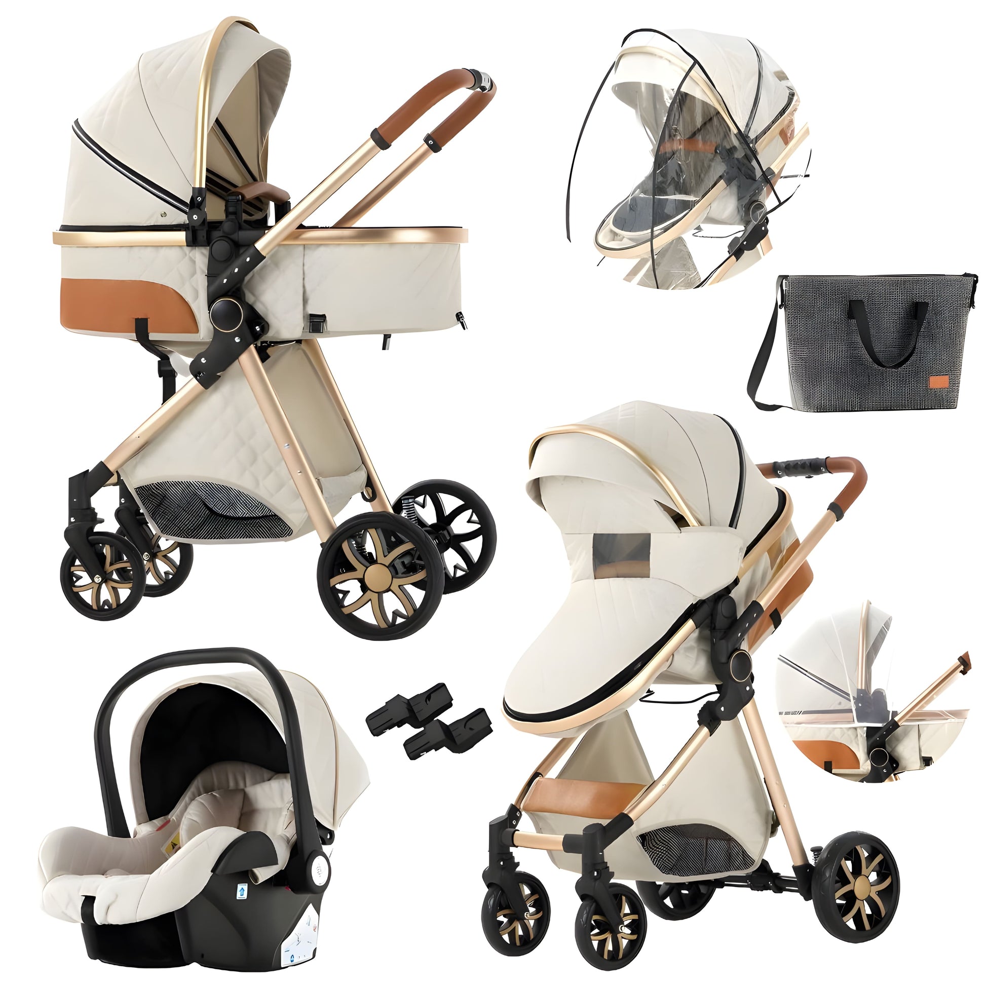 With its lightweight build and convenient foldability, this stroller is highly portable, ideal for accompanying you wherever you go. Whether you're running errands, traveling, or enjoying a relaxed walk in the park, the Luxury 3-in-1 Baby Stroller stands out as the ideal option for any parent.