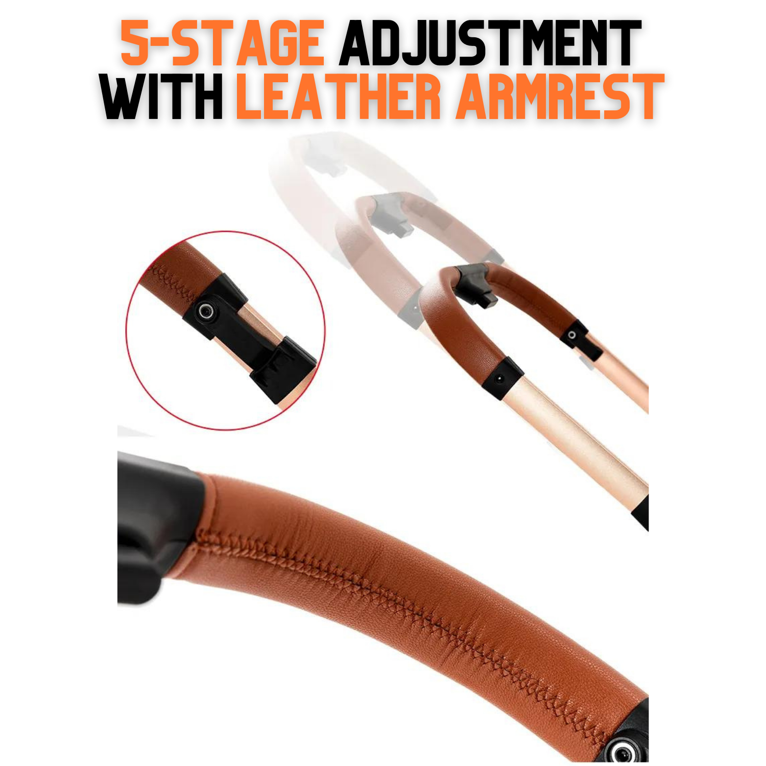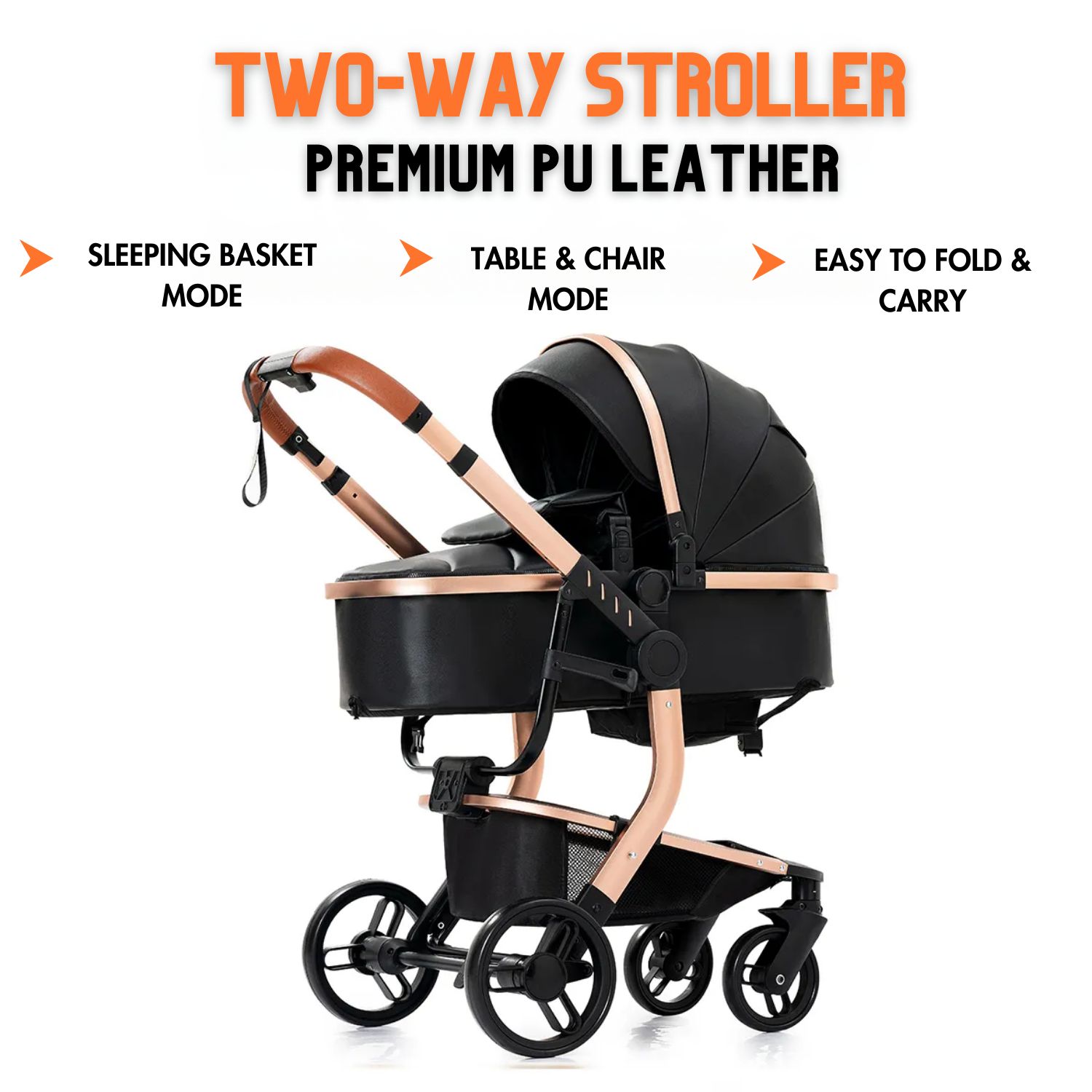 The Luxury Leather 3-in-1 Baby Stroller combines convenience, comfort, and style seamlessly. This adaptable stroller is crafted to evolve with your child, effortlessly shifting from a car seat to a stroller and eventually to a toddler seat. The provided car seat base enables a smooth transition of your sleeping baby from the car to the stroller without causing any disturbance.