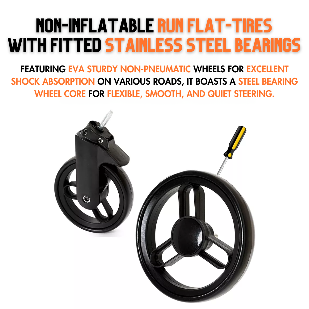 - Wheels: Front Rubber Wheels 19cm (7.5-Inch); Rear Rubber Wheels 26cm (10.5-Inch)