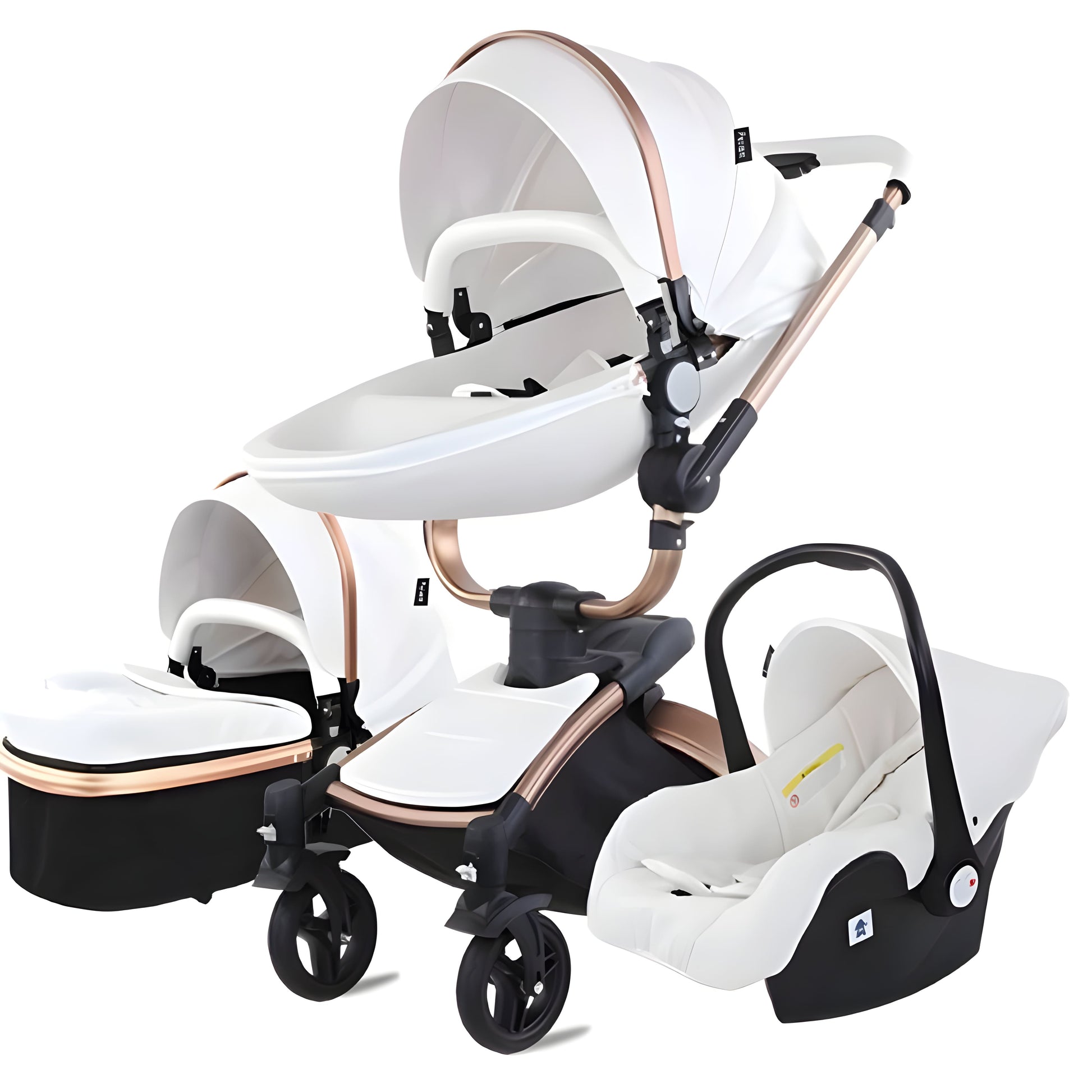 Embark on your journeys with your child in confidence and comfort, thanks to the Luxury Leather 360° Rotating 3-in-1 Baby Stroller!