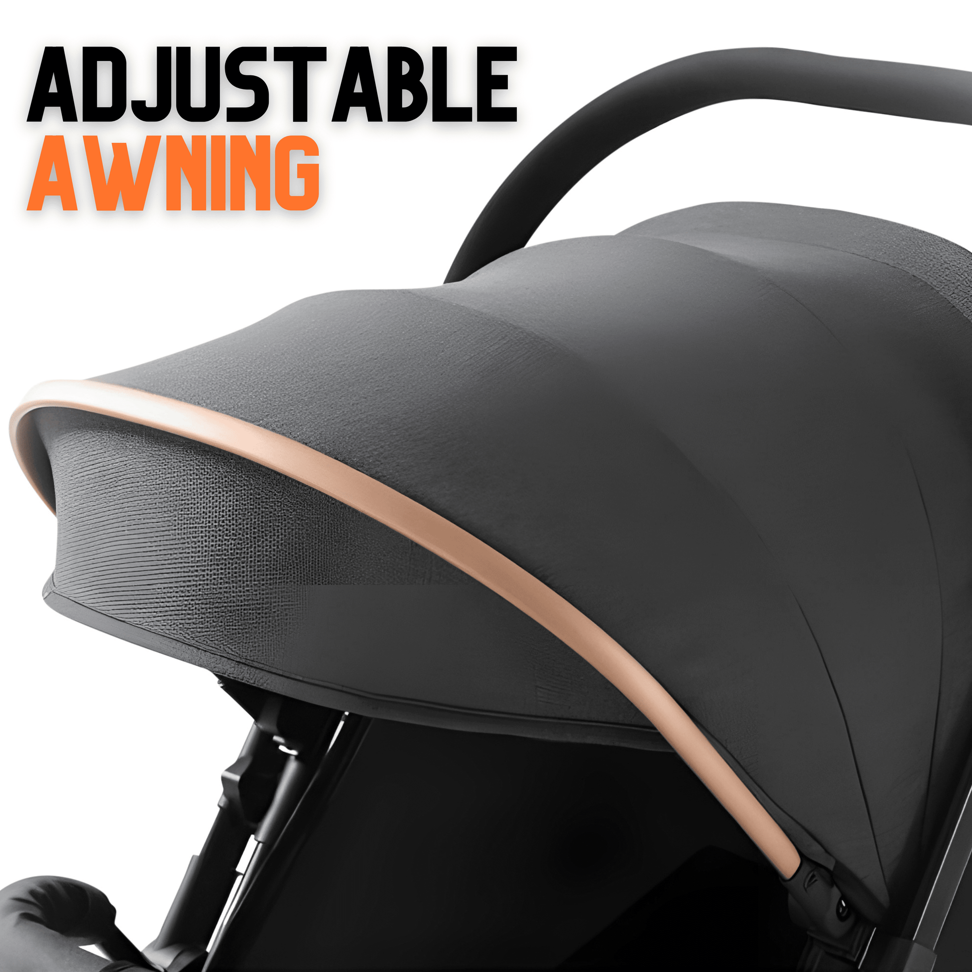 Safety and comfort are at the forefront of the NimbleNest’s design. The stroller features double brakes for enhanced safety, a 5-point safety harness, and SUV shock-absorbing wheels for a smooth ride on any terrain. The quality double-layer mattress, ergonomic cushion for spinal support, and adjustable seating positions with three different angles ensure your baby’s comfort on every journey. The adjustable awning and breathable mesh window provide protection and ventilation, making this stroller perfect for any weather.