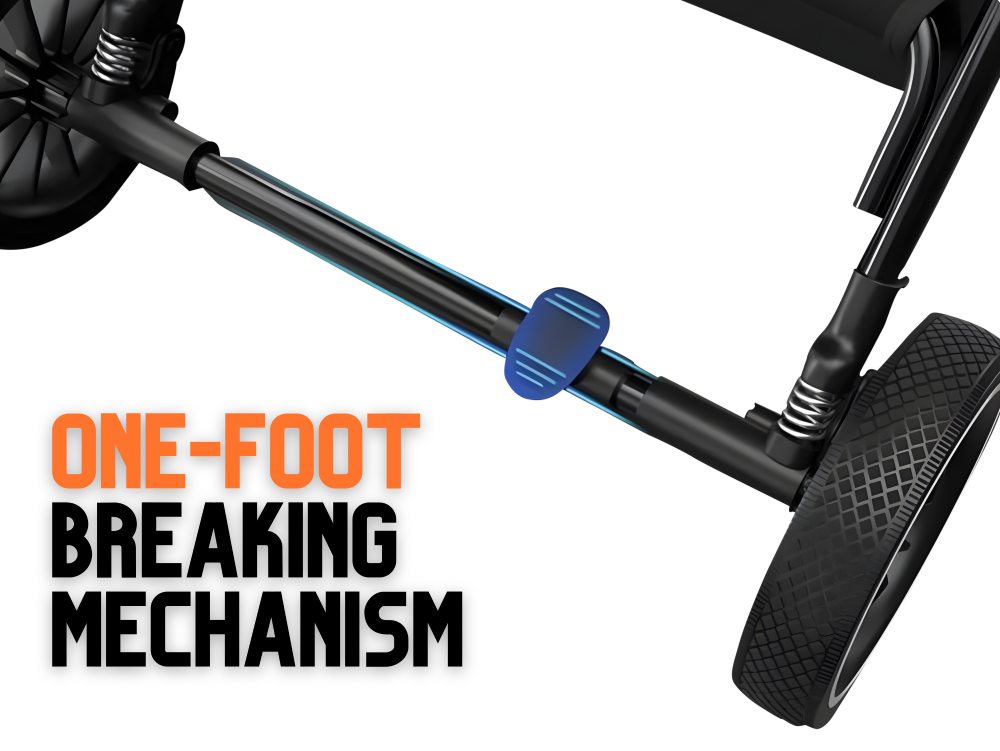 - Efficient and smooth double-brakes with a one-foot stop operation.