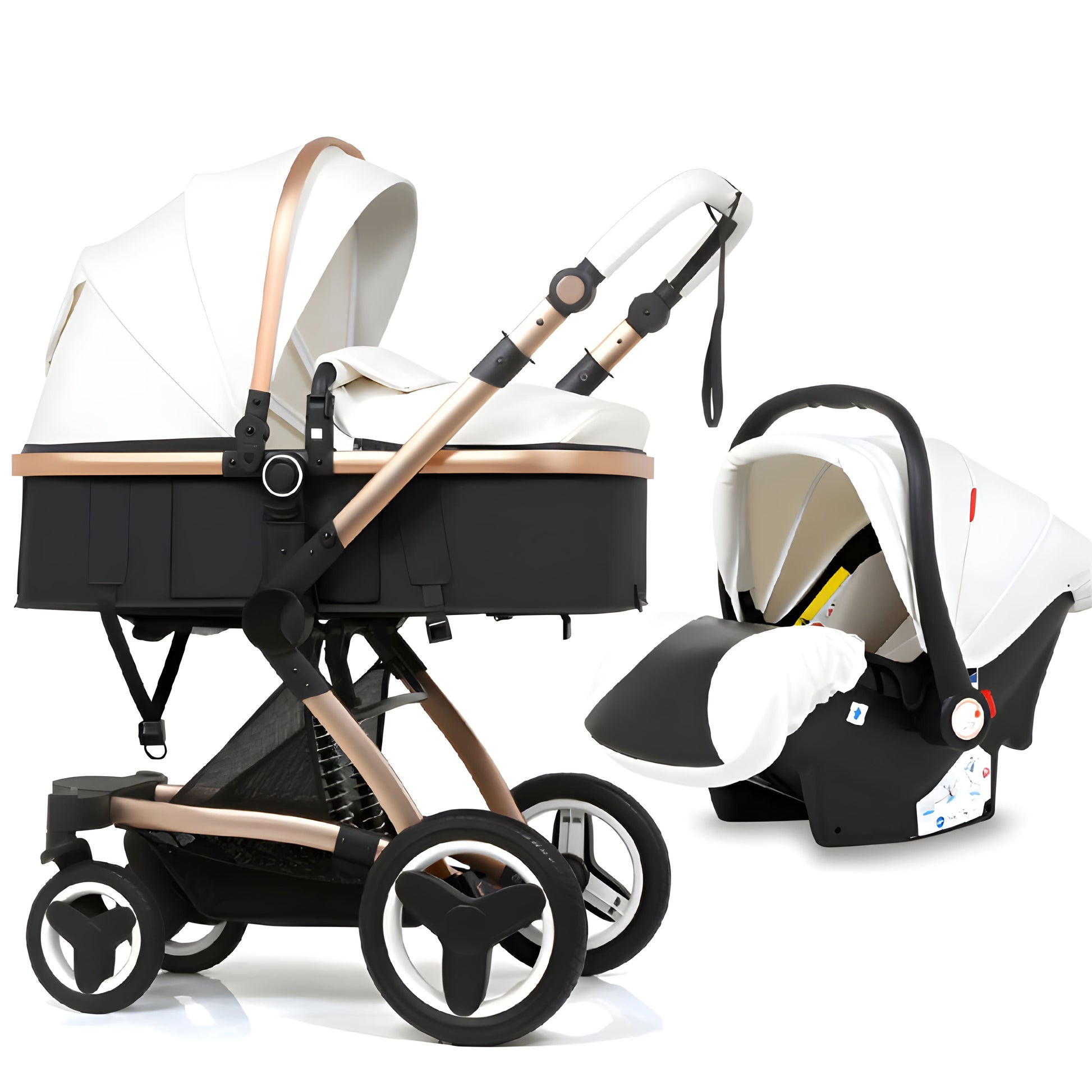 Thanks to its lightweight design and easy folding mechanism, transporting this stroller is a breeze. Whether you're running errands or embarking on adventures with the family, the Premium Leather 3-in-1 Baby Stroller is the ideal companion for every parent. Don't miss out on this essential item—secure yours today!