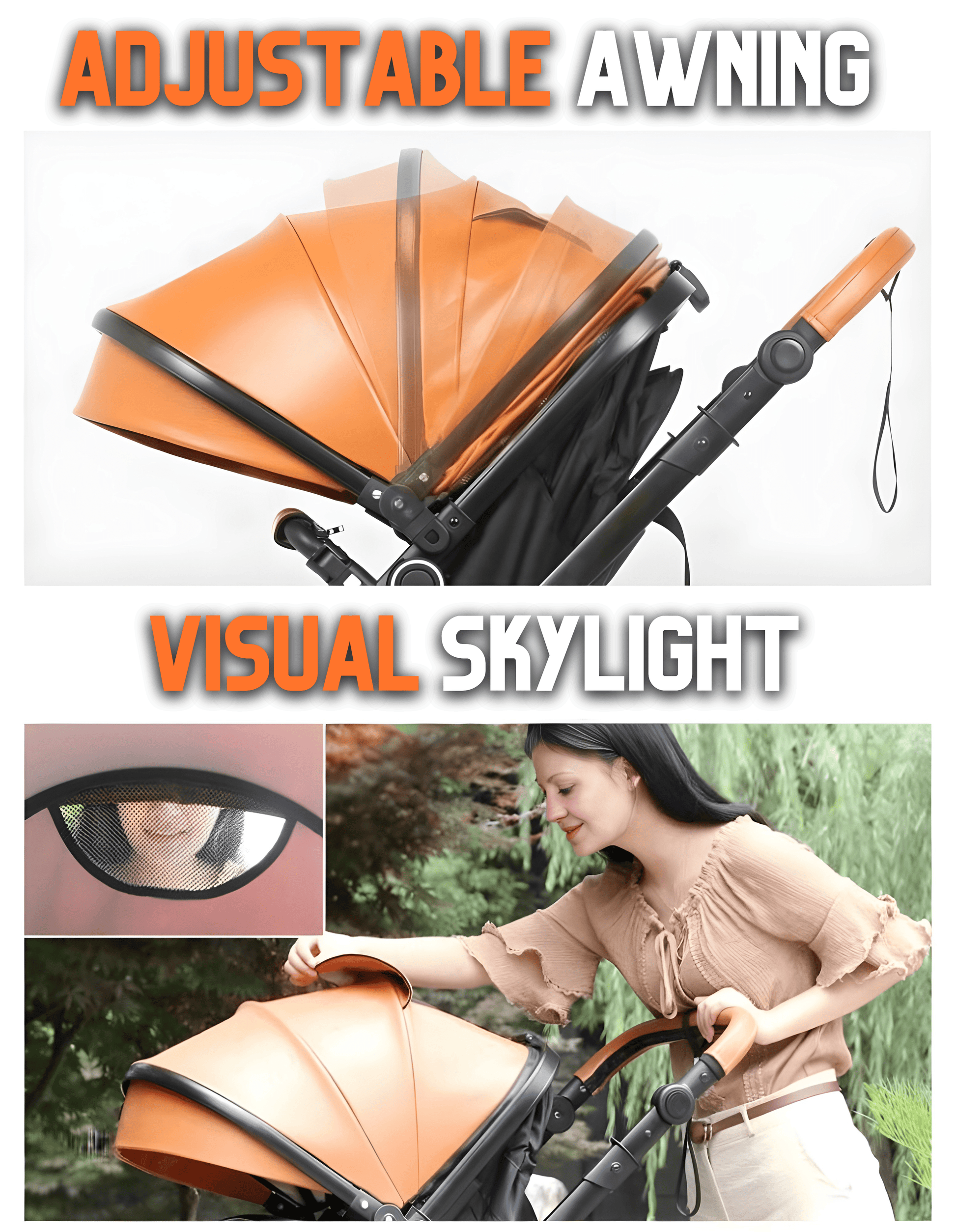 Thanks to its lightweight design and easy folding mechanism, transporting this stroller is a breeze. Whether you're running errands or embarking on adventures with the family, the Premium Leather 3-in-1 Baby Stroller is the ideal companion for every parent. Don't miss out on this essential item—secure yours today!