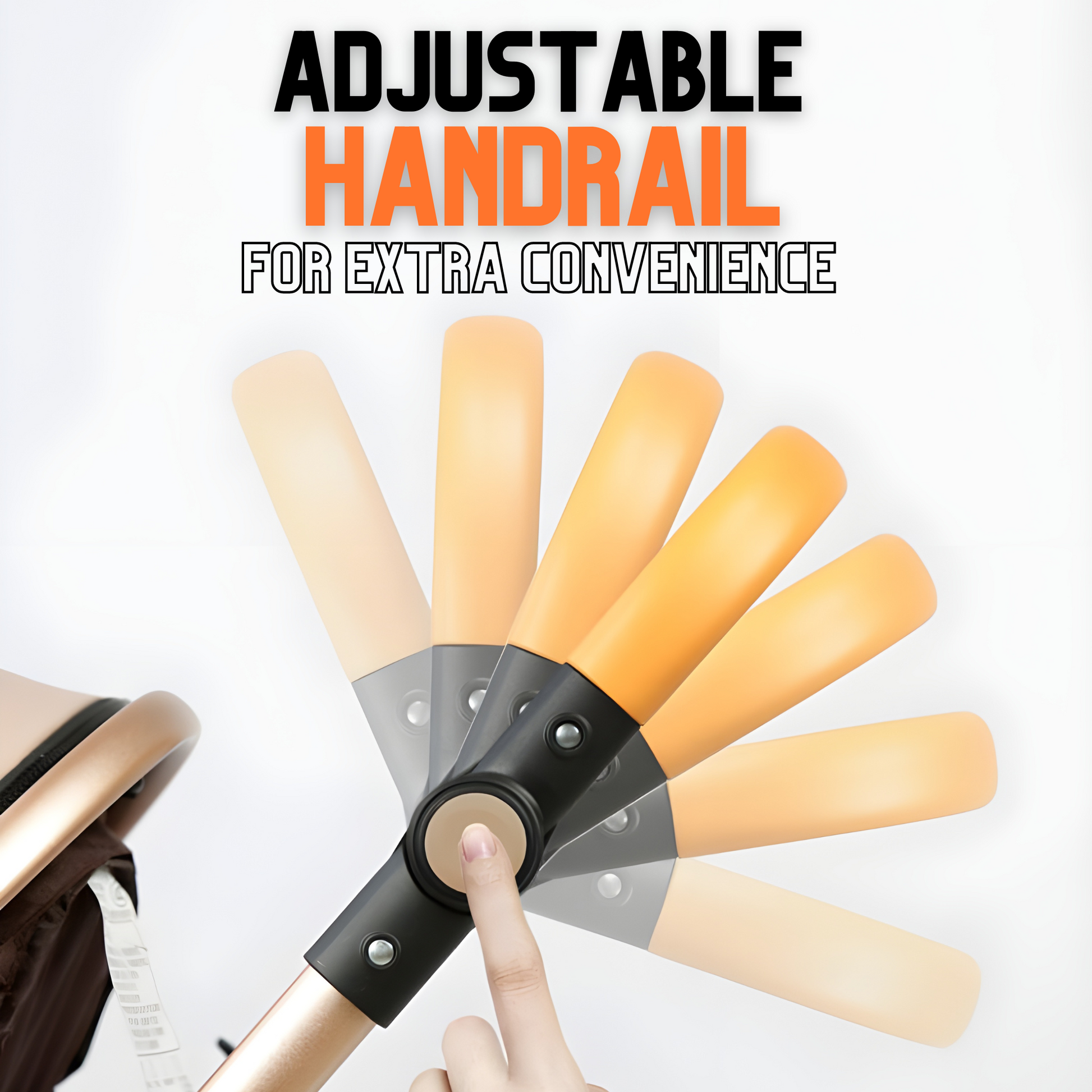 CUSTOMISED TO IT YOUR HEIGHT: The adjustable handlebar caters to individuals of different heights, ensuring you find the perfect position for pushing the stroller comfortably. Additionally, a spacious storage basket provides ample room to keep all your essentials within easy reach.