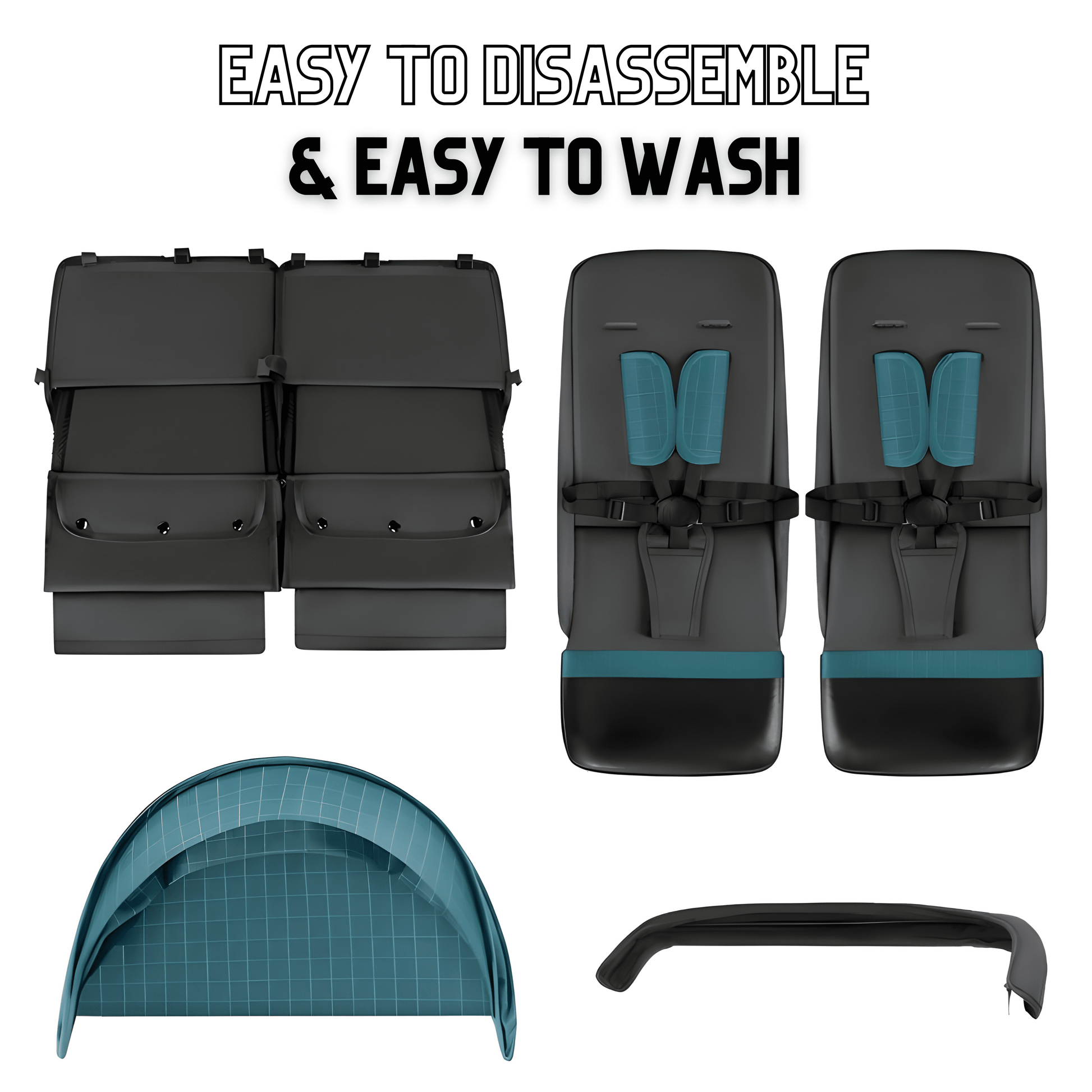 Explore our Prime Twin Baby Stroller, a premium solution crafted with the utmost care to ensure both safety and comfort for your little ones. Safety is paramount, which is why our stroller is equipped with a five-point safety belt system, securely keeping your babies in place during every adventure. Crafted from high-quality linen and 600D Oxford cotton, combined with lightweight aluminium alloy, this stroller offers durability without sacrificing portability.
